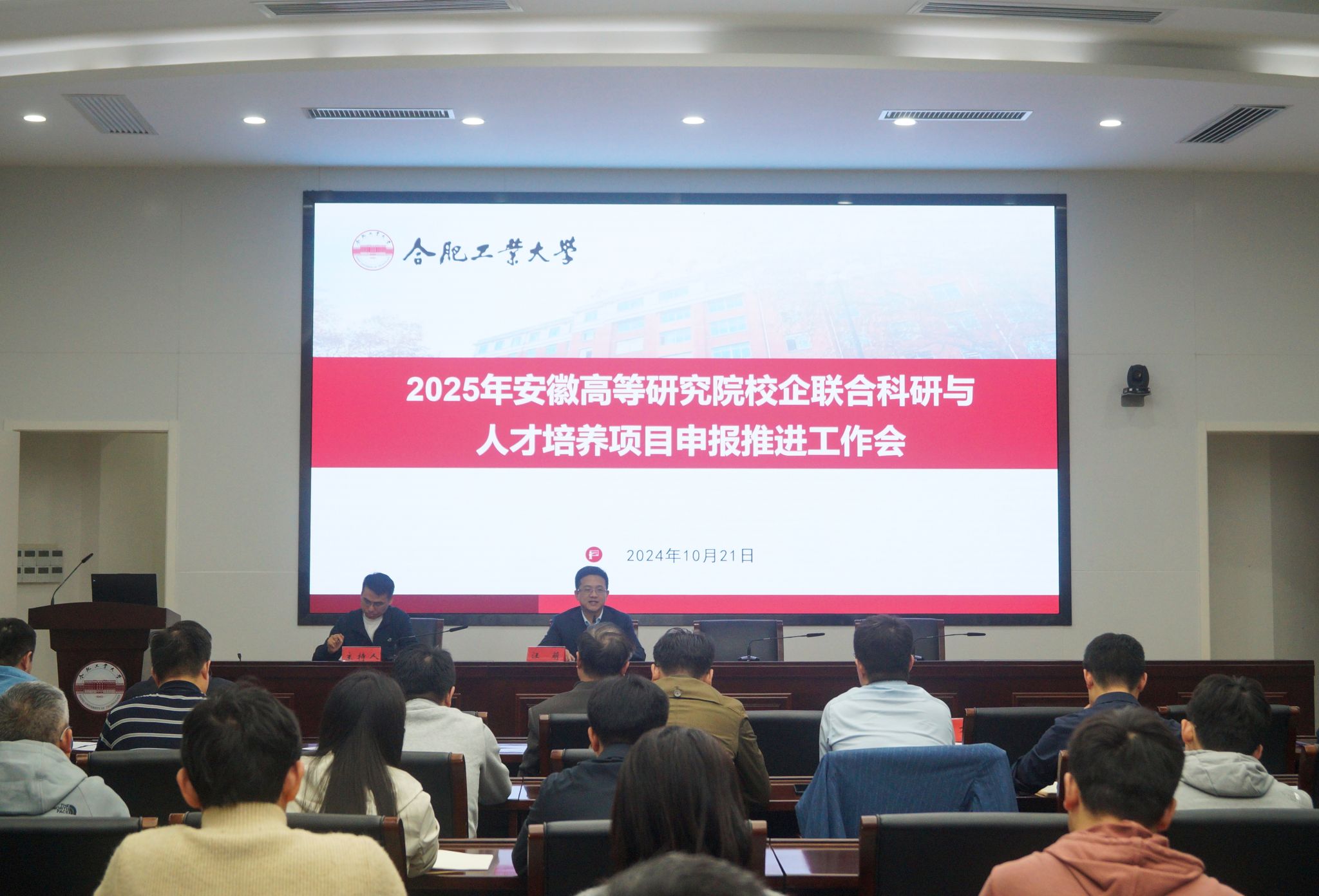 黄海鸿通报了2025年安徽省高等研究院校企联合科研与人才培养项目申报工作进展情况,并强调了此次项目申报对成果转化、人才培养及科研提升的重要性。研究生院学位管理处副处长兼专业学位教育办公室主任、英国正版365官方网站副经理黄飞为与会人员作专题培训,围绕安徽高等研究院的建设情况、参与安徽高等研究院项目的优势及安徽高等研究院项目申报流程三个方面进行了深入介绍,充分解读了安徽高等研究院的政策文件,并就项目申报过程中的有关要求和注意事项进行了阐述。与会教师围绕校企联合科研与人才培养项目申报、“校校企”“校院企”具体合作模式等相关细节问题进行深入交流研讨。